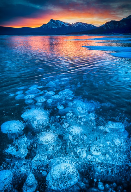Previous ImageNext Image Methane gas bubbles frozen under the ice at Abraham Lake, Alberta, Canada Open 3rd Place